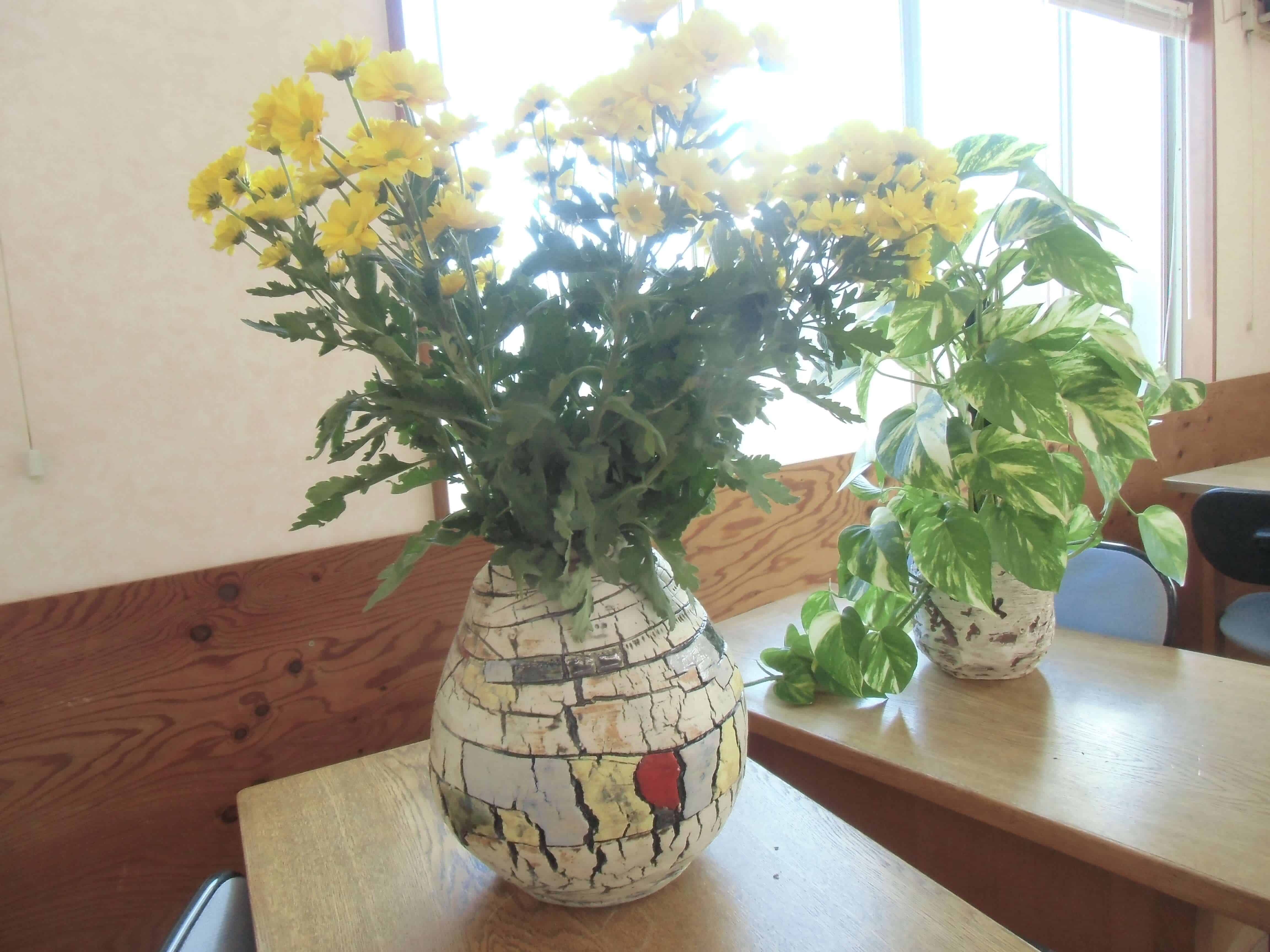 2020年1月31日 / 最終更新日 : 2020年1月31日 fukurounomori ひとりごと 陶芸展に出品した壺に水 静岡工芸美術展に出品した壺にお水をいれてみました。 今のところ水漏れはないようです。 縦横約28センチ24センチで少し大柄。作風上、厚みもあるので少々重たい壺です。 それに水を入れたので、移動が大変になりました。 満席になるときは移動する必要があります。T先生に怒られそうです。 でも、教室にお花があるっていいですね。たまにはいいなあと思いました。 FacebookXBlueskyHatenaCopy
